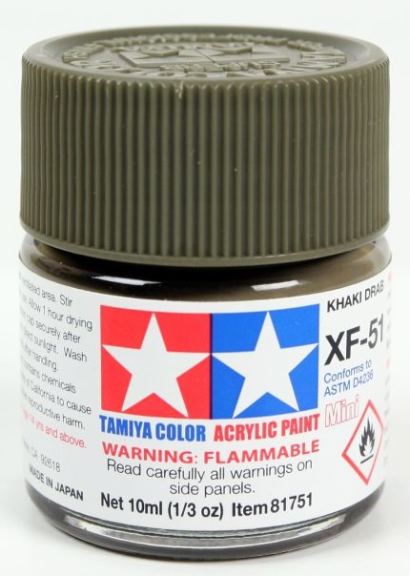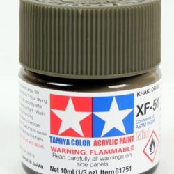Le vernici acriliche Tamiya Color Acrylic Paints sono realizzate con resine acriliche solubili in acqua e sono eccellenti sia per la pittura a pennello che a spruzzo. Queste vernici possono essere utilizzate su resine stirene, polistirolo, legno, oltre a tutti i comuni modelli di plastica. La vernice copre bene, scorre dolcemente senza sbiadire e può essere facilmente miscelata.