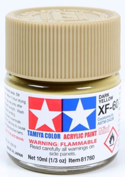 Le vernici acriliche Tamiya Color Acrylic Paints sono realizzate con resine acriliche solubili in acqua e sono eccellenti sia per la pittura a pennello che a spruzzo. Queste vernici possono essere utilizzate su resine stirene, polistirolo, legno, oltre a tutti i comuni modelli di plastica. La vernice copre bene, scorre dolcemente senza sbiadire e può essere facilmente miscelata.