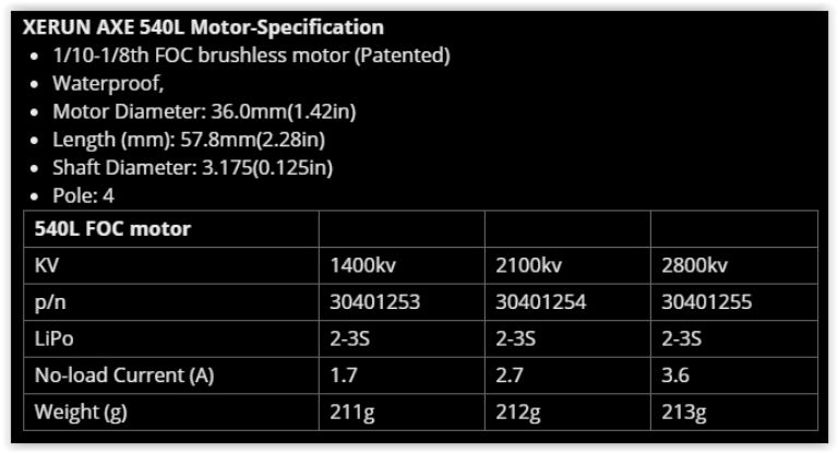 Anche il motore XeRun AXE R2 540 con il suo albero da 3,175 mm e 1400 KV contribuisce a questo, con il design del rotore a poli sfalsati integrato brevettato da Hobbywing, il motore a 4 poli non ha quasi nessuna coppia di arresto e funziona senza problemi in tutte le condizioni, con la funzione professionale del freno a mano, l’auto è ora immobile al 100%, anche sui pendii più ripidi, il motore e il regolatore sono entrambi collegati tramite uno speciale cavo sensori con un connettore impermeabile migliorato.