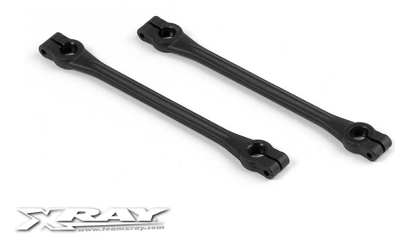 Molded composite pod links for XRAY XII Link rear pod. Equal length links to ensure perfectly-straight pod mounting for straight running. Adjustable ball-joint tension. Specially-formulated tough composite material for light weight, strength, and durability. Set of 2.