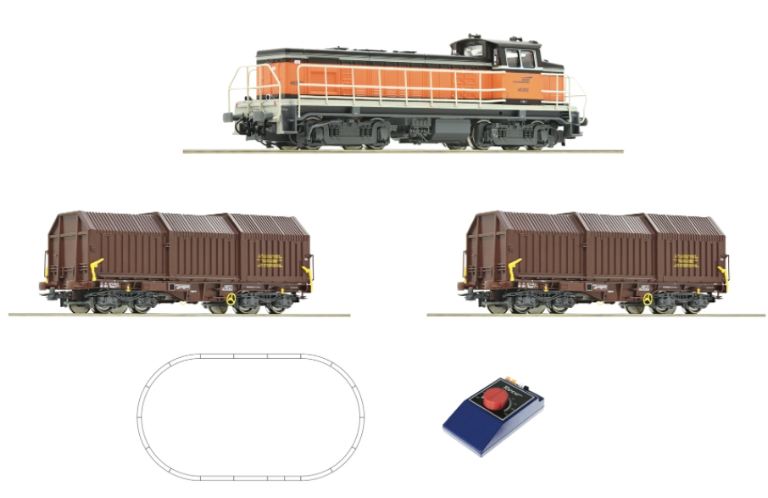 Set di partenza analogico: Locomotiva Diesel gruppo BB 63000 con un treno merci delle Ferrovie statali francesi.