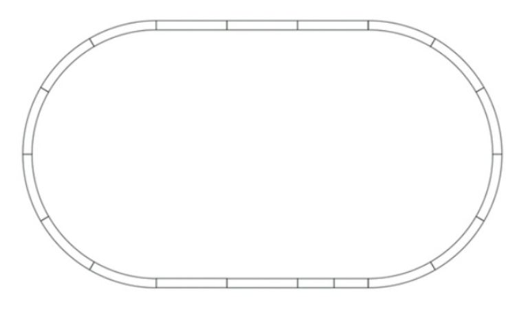 12 binari curvi R2, 5 binari retilinei G1, 1 binario retilineo G½ e 1 binario di raccordo (G½)