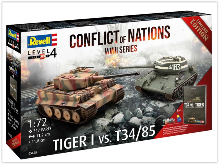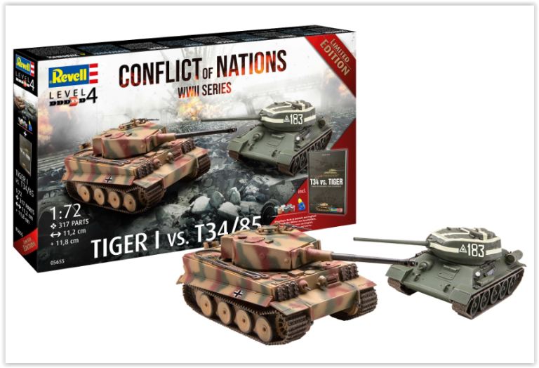 Benvenuto nel Conflict of Nations: WWII Exclusive-Set, un’occasione unica per appassionati di storia e modellismo. In questo set troverai due kit di modelli di altissima qualità in scala 1:72 – il leggendario T-34/85 e il temibile Tiger I. Con un totale di 317 parti, potrai ricreare questi iconici carri armati con una precisione impeccabile.