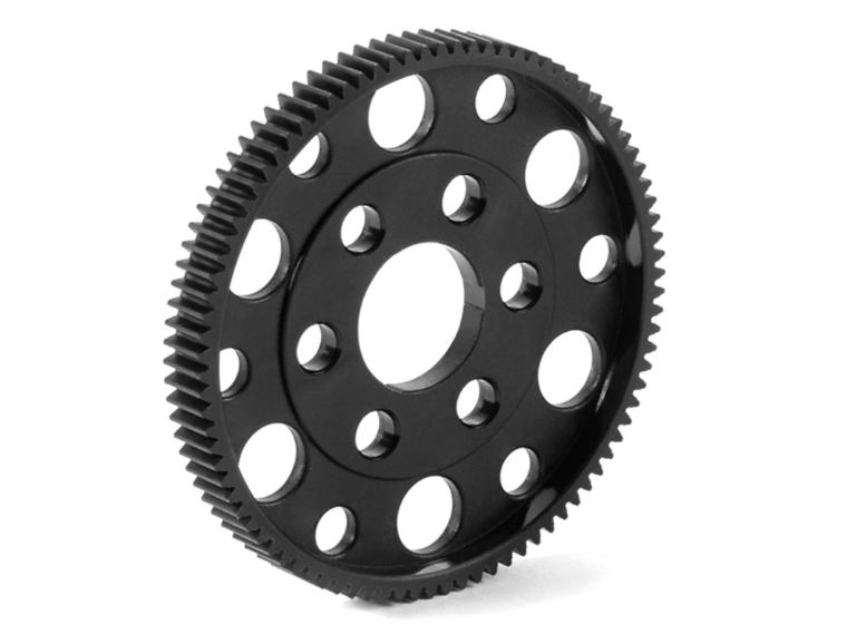 Corona di precisione modulo 64 in speciale materiale composito duro, strategicamente alleggerito per ridurre la massa rotante senza compromettere la resistenza o la durata nel tempo.