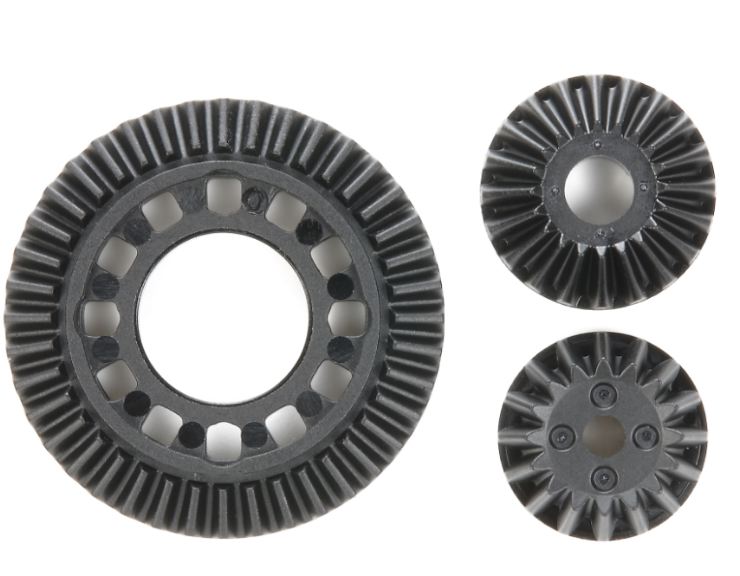 Questo è il pezzo di ricambio unidirezionale e corona dentata progettata per essere utilizzata con il telaio dell’auto da turismo Tamiya TB-04 4WD.