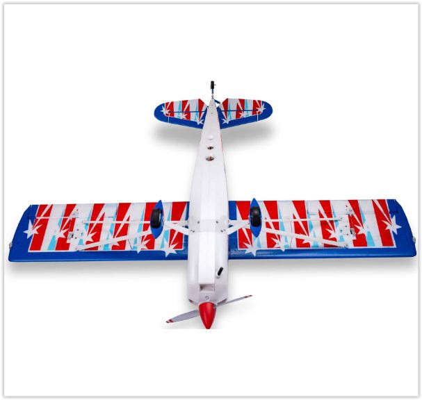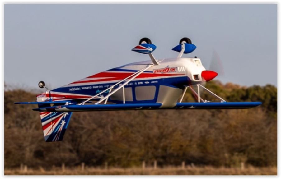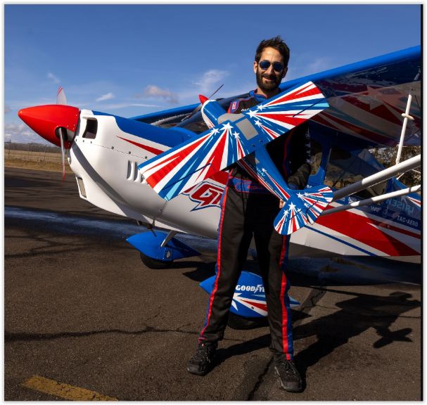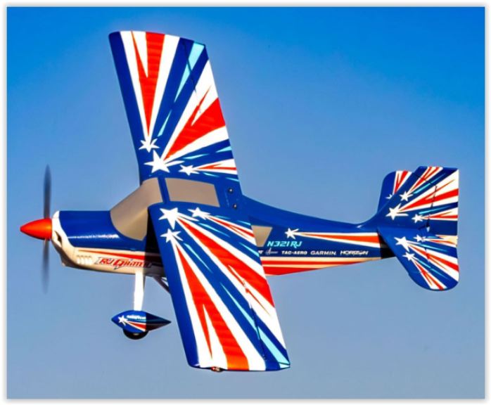 Modello in scala dell’iconico addestratore acrobatico full-scale, replica del Decathlon pilotato da RJ Gritter durante le esibizioni aeree negli Stati Uniti.