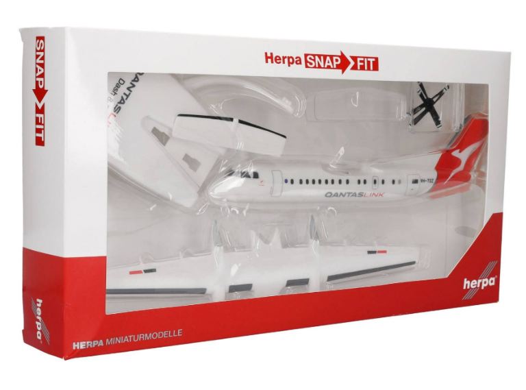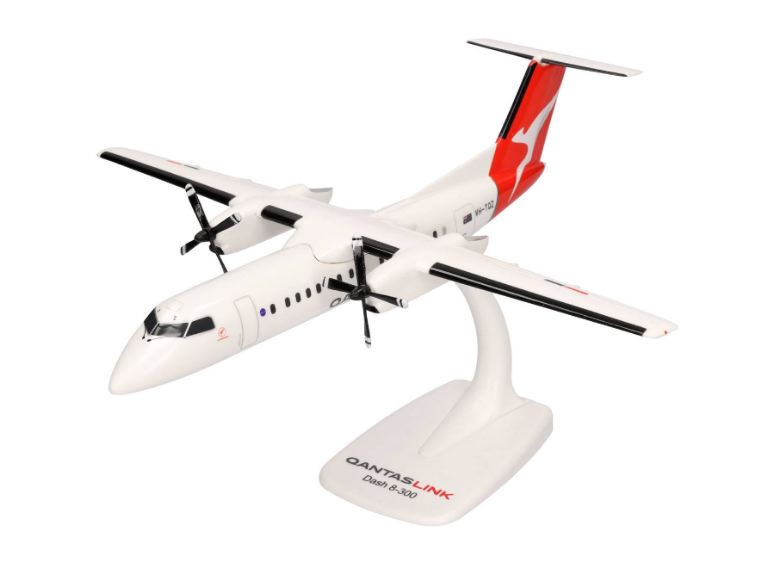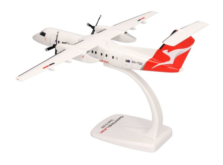 In totale, 16 Dash 8 sono operati da Eastern Australia Airlines sotto il marchio QantasLink e servono oltre 30 città e comuni dalle loro tre basi a Sydney, Melbourne e Adelaide, principalmente nelle parti orientali del vasto paese. I modelli Snap-Fit di Herpa brillano per un rapporto qualità-prezzo imbattibile. Vengono forniti con un supporto per esposizione e possono essere assemblati facilmente senza colla o altri strumenti.