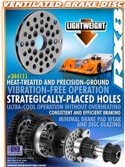 Lightweight, heat-treated and precision-ground ventilated brake disc for RX8. CNC-machined brake disc is balanced for vibration-free operation. Strategically-placed holes allow for ultra-cool operation without overheating, ensuring consistent and efficient braking to minimize brake pad wear and disc glazing.