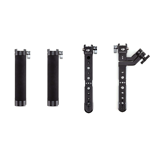 Il manubrio multipresa DJI R è dotato di porte NATO, per permettere di sostenere DJI RS 2/DJI RSC 2 in diverse configurazioni, ad esempio con entrambe le mani e in modalità valigetta (Briefcase). Offre un design a sgancio rapido e impugnature meccaniche su entrambi i lati, sostituibili con l’impugnatura di controllo DJI Ronin. Entrambi i bracci orizzontali riportano fori filettati 3/8”-16 e 1/4”-20 e slitte a freddo per il collegamento dei diversi accessori. Per istruzioni dettagliate, consultare il manuale d’uso dell’impugnatura di controllo DJI Ronin.