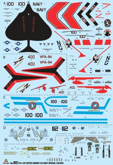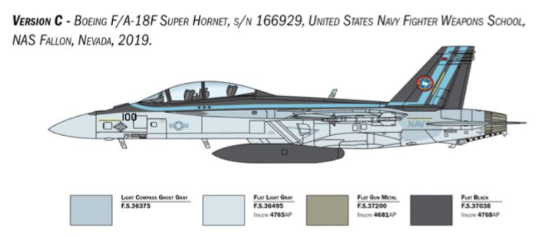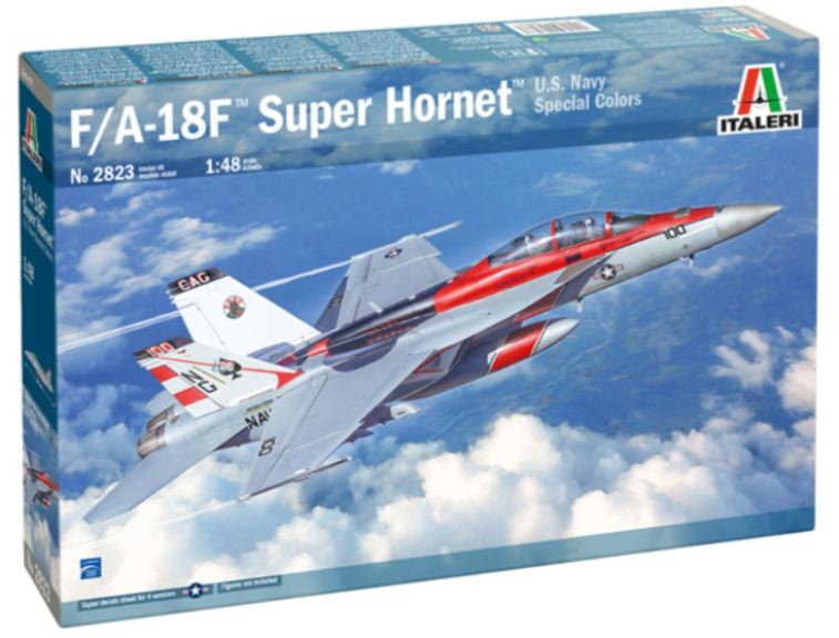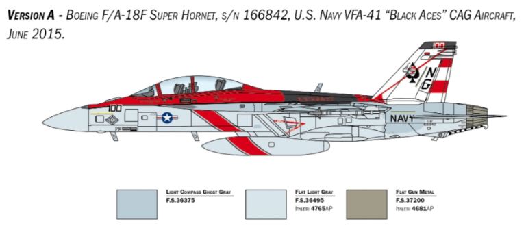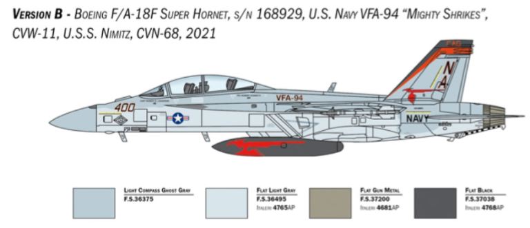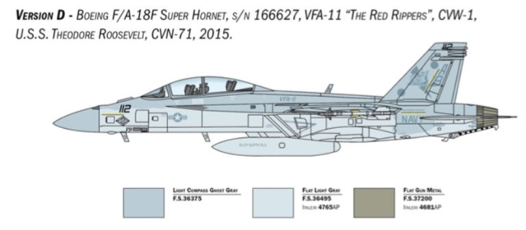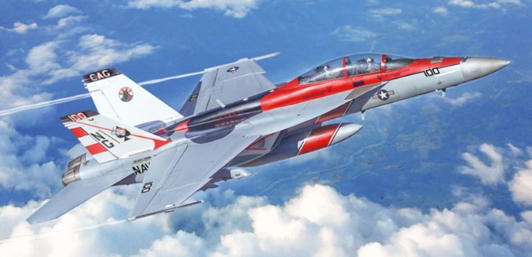 Il Boeing F/A-18F Super Hornet è un moderno caccia bimotore imbarcato monoposto derivato direttamente dal progetto originario del Mc Donnell Douglas F/A-18 Hornet. Più largo e più pesante del suo predecessore si caratterizza per caratteristiche di volo e di combattimento notevolmente migliorate. Riconoscibile per la forma delle ali, che garantiscono elevata manovrabilità, delle prese daria e del timone di coda, entrò in servizio con la U.S. Navy nei primi anni 2000 per sostituire gli F-14 Tomcat e per svolgere le missioni di difesa aerea della flotta. Dotato di grande autonomia e di unavionica decisamente migliorata è armato con un cannone M61 da 20 mm. e può trasportare un carico offensivo costituito da missili aria-aria. La grande flessibilità operativa dellaereo permette di svolgere efficacemente missioni di difesa aerea, attacco al suolo, supporto ravvicinato, e interdizione.