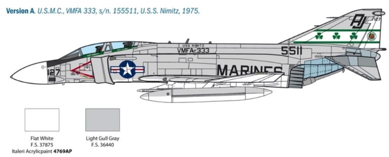 Progettato dallazienda americana McDonnell Douglas ed entrato in servizio durante gli anni sessanta, il cacciabombardiere ogni-tempo supersonico biposto F-4 Phantom II è tra i più noti e celebri aerei della Storia dellaviazione militare. Inizialmente progettato per la U.S.Navy, venne largamente impiegato anche dall U.S. Air Force ed ebbe un significativo successo commerciale in tutto il mondo. Loriginaria versione destinata alla U.S Navy venne ulteriormente migliorata nel 1966 con lavvio produttivo del Phantom F-4J, caratterizzato dalladozione di un sistema darma in grado di amplificare la capacità operativa nei combattimenti aria-aria e nelle missioni di attacco al suolo. Lavionica venne decisamente migliorata e venne adottato linnovativo sistema di controllo dei bersagli look-down/shoot-down. Vennero inoltre utilizzati due nuovi motori J79-GE 10, con una maggiore spinta, che consentivano al Phantom II di superare la velocità di 1.240 nodi (circa 2.300 Km/h). Velocità, accelerazione e affidabilità erano infatti i punti di forza del Phantom in grado di controbilanciare la manovrabilità ridotta dovuta alle sue grandi dimensioni.