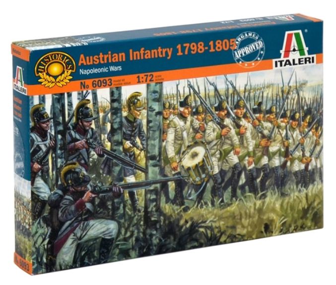 Il 14 giugno 1800, Napoleone, primo console di fresca nomina, si scontra a Marengo contro 31.000 uomini del generale austriaco barone Melas. La vittoria francese, ottenuta con il sacrificio del generale Desaix, ha modificato lo scenario politico dell Europa Napoleonica. La fanteria austriaca del kit è rappresentata con il tipico tozzo cappello di cuoio con la placca dottone su cui era impressa laquila imperiale. Alcuni soldati sono raffigurati con lelmo modello 1798 con le iniziali di Francesco II tipiche dei battaglioni di fanteria leggera dei Frei-Corps o degli Jager.