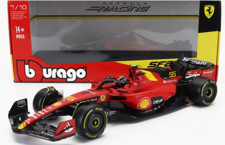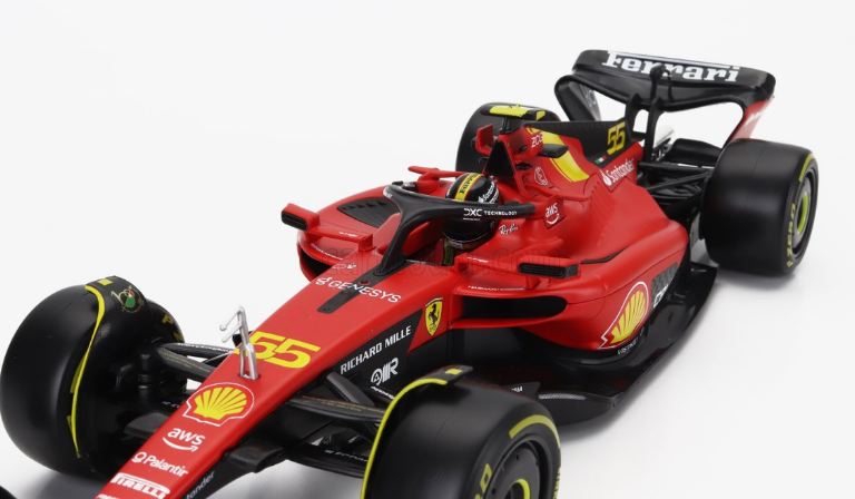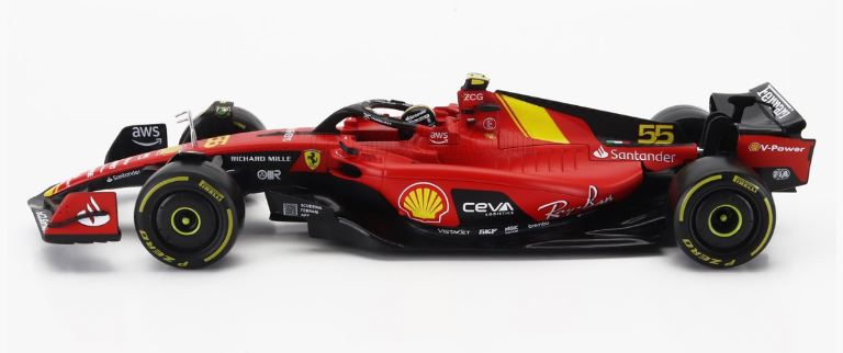 Al GP dItalia a Monza la livrea delle SF-23 ha avuto un tocco di giallo, uno dei colori storici dellazienda già protagonista in occasione del 75° anniversario della fondazione della Ferrari. Sulle monoposto si è fatto posto un riferimento che rimanda alla carrozzeria della 499P vincitrice della gara di durata più famosa del mondo, ovvero la banda gialla a forma di V che attraversa la carrozzeria della Hypercar. Questo riferimento, presente sul muso e sul cofano motore, ha legato ancora di più due vetture che già sono accomunate da un elemento fondamentale, il Rosso Le Mans della livrea, che sulla SF-23 è in versione opaca, mentre è lucido sulla 499P. Anche i numeri di gara, il 16 e il 55, sono in giallo sulle due monoposto, mentre le tute di Leclerc e Sainz, realizzate appositamente per loccasione, hanno i tradizionali colori della Casa di Maranello oltre al rosso, il giallo e il nero unitamente al logo con la F lunga già applicato sullala posteriore.
