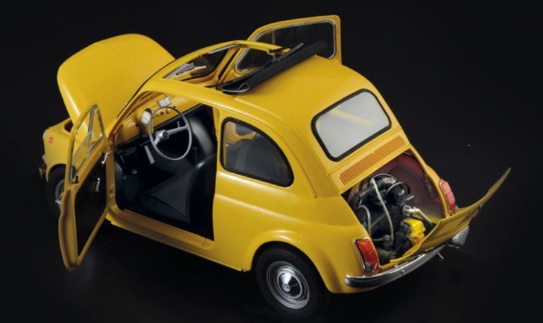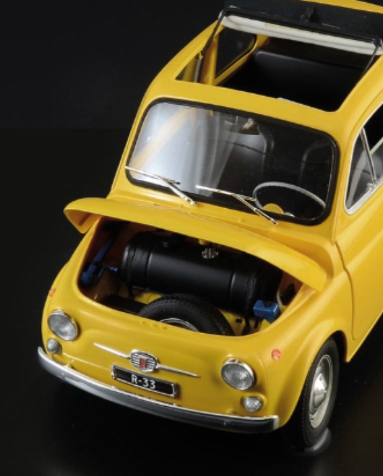 La Nuova 500 venne prodotta dalla Fiat dal 1957 al 1975. Vera e propria icona su quattro ruote costituisce uno dei simboli del made in Italy ed il suo design, unico e riconoscibile, è famoso in tutto il mondo. Lobiettivo dellazienda di Torino era semplice: produrre una vettura utilitaria in grado di aumentare il bacino di clienti che potevano permettersi unautomobile. Non solo. Lauto doveva essere semplice da guidare, anche in città, e dai bassi costi di gestione Nel 1965 venne introdotta la versione F destinata a diventare quella con il maggior numero di unità prodotte. La prima a montare le porte con cerniere anteriori, in linea con la nuova normativa del Codice della Strada, la Fiat 500 F adottò numerose soluzioni tecniche ed estetiche innovative, come il cambio della scocca e il parabrezza più ampio. E ancora oggi la più classica delle 500 prodotte ed è rimasta nel cuore di molti automobilisti.