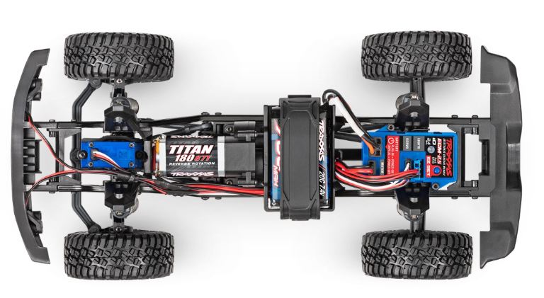 TRX-4M include un trasmettitore TQ di dimensioni standard per comfort, affidabilità e controllo preciso a lungo raggio tutto il giorno.