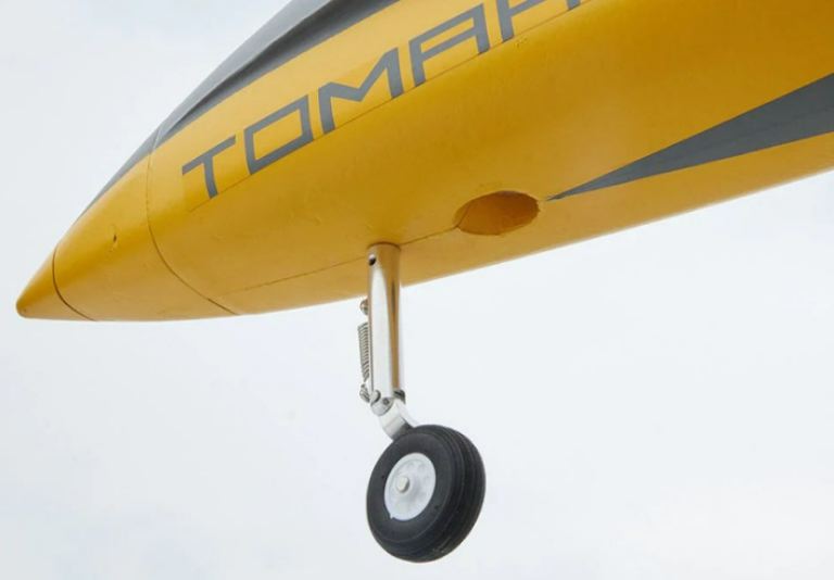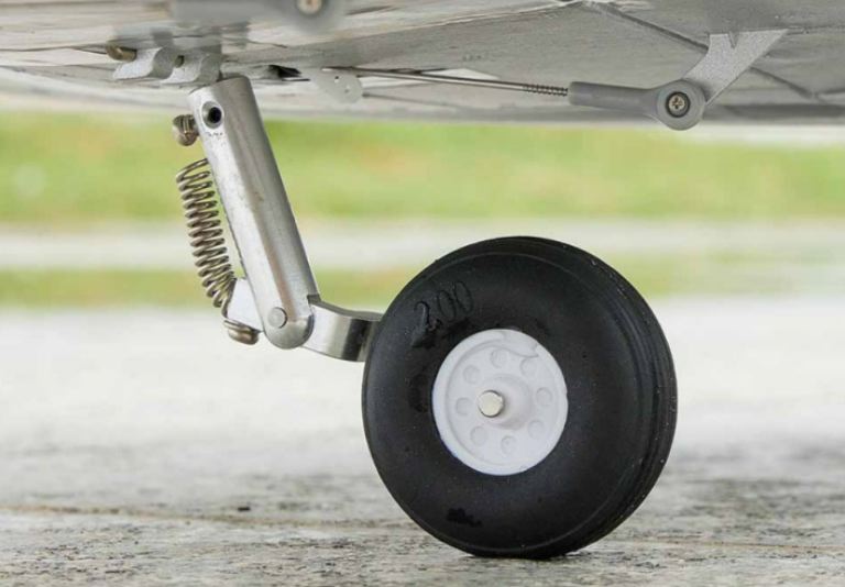 Carrello di atterraggio CNC interamente in metallo, sospensione a braccio oscillante, altamente preciso e robusto.