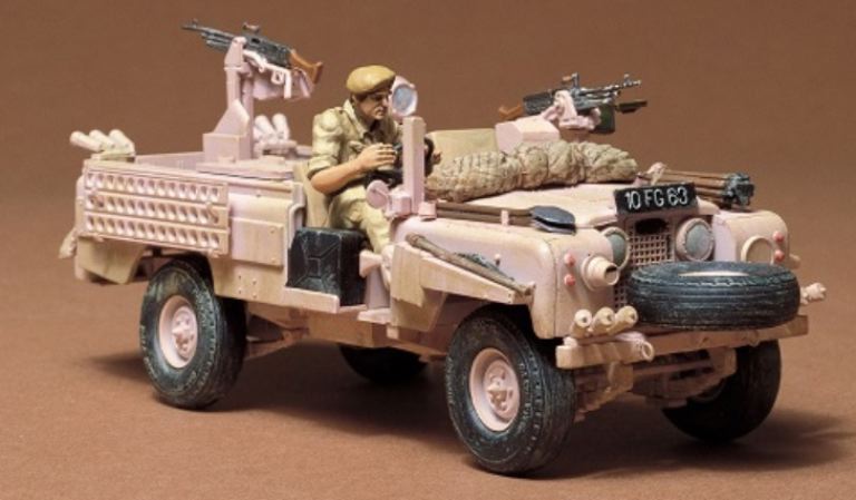 Questo è un kit di montaggio, prodotto in edizione limitata, del modello Land Rover Pink Panther, uno speciale veicolo del deserto utilizzato dalla SAS per reprimere la ribellione coloniale dal 1970.