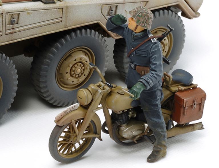 Special feature 7 Includes 3 Tamiya figures (originally in Item 35252) in realistic pose, plus parts recreating a motorcycle.