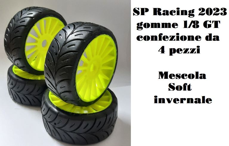 Treno di gomme (4 pezzi) per 1/8 GT SP Racing 2023.