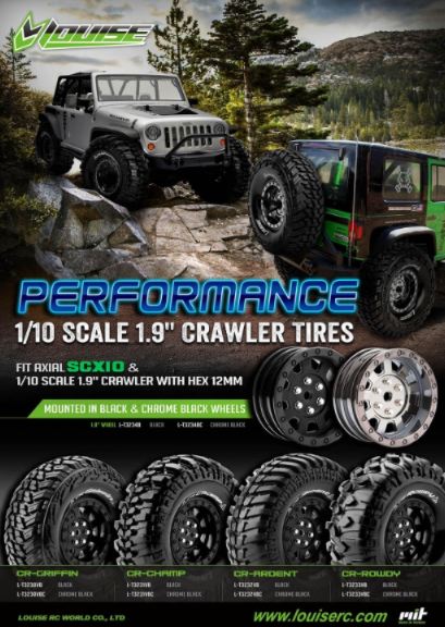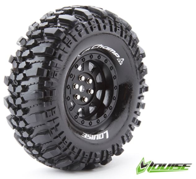 Louise RC – CR-CHAMP – 1-10 Crawler Tire Set – Mounted – Super Soft – Black 1.9 Rims – Hex 12mm – 1 Pair