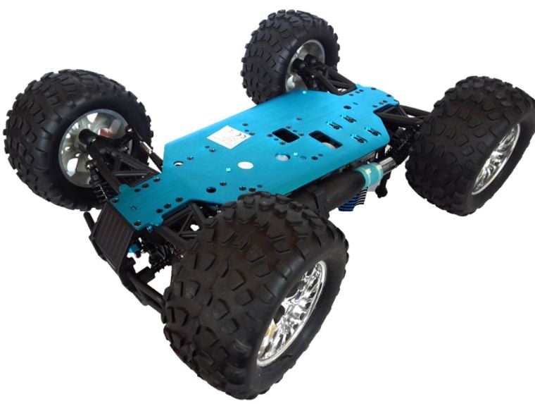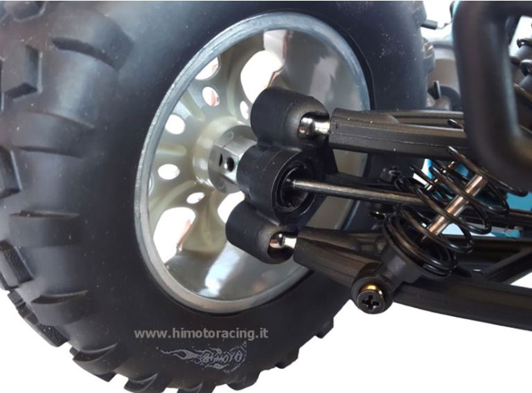 Dotato di **imponenti ruote cromate da 120×60 mm**, è in grado di superare ostacoli elevati con facilità e di assorbire perfettamente l’impatto durante salti spettacolari. Grazie agli **8 ammortizzatori anodizzati blu a lunga escursione con riempimento ad olio e testate in alluminio**, garantisce stabilità, elasticità e controllo anche nelle situazioni più impegnative, mantenendo trazione perfetta persino su una sola ruota.