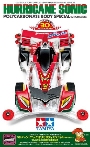 Modello commemorativo del 30° anniversario della Fully Cowled mini4WD. La Hurricane Sonic dispone di un nuovo body in policarbonato trasparente.