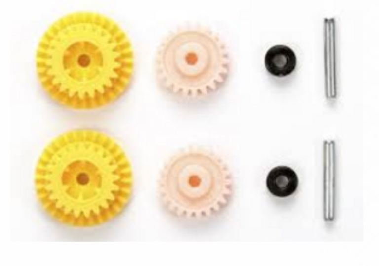 Set di ingranaggi velocità per il telaio MS delle mini4WD-PRO. Il particolare rapporto di riduzione 3,7:1 permette una scelta intermedia tra i rapporti 3,5:1 e 4:1 attualmente disponibili per questo telaio.