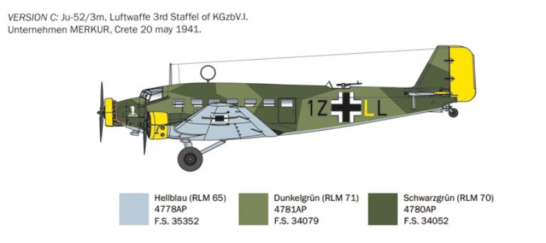 Lo Junkers Ju-52/3m venne prodotto dalla celebre azienda aeronautica tedesca a partire dai primi anni 30 per essere destinato allimpiego civile con la Lufthansa e con altre importanti compagnie commerciali. Si caratterizzava per la configurazione a tre motori e per la caratteristica fusoliera metallica ricoperta da pannelli di metallo ondulato. Aereo robusto ed affidabile venne subito utilizzato anche in campo militare dalla Luftwaffe che lo utilizzò prevalentemente con aereo da trasporto. Lo Ju-52, soprannominato affettuosamente Tante Ju (zia Ju), fu impiegato su tutti i fronti operativi per lintera durata della guerra e costituì il perno della logistica militare tedesca nelle operazioni di rifornimento alle truppe di terra ma venne impiegato anche per le missioni di lancio delle truppe aviotrasportare. Celebre il suo impiego per il lancio dei paracadutisti nei Paesi Bassi nel 1940 o a Creta nel 1941.
