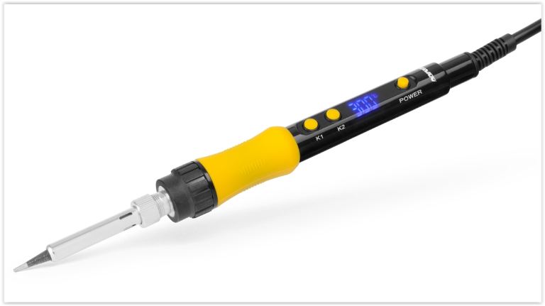Saldatore a penna da 110 W con controllo elettronico della temperatura (100–500 °C) e alimentazione di rete 230 V. Saldatore compatto per lavori di precisione a casa, in officina, in aeroporto, in pista o in acqua, ovunque sia disponibile l’alimentazione di rete.