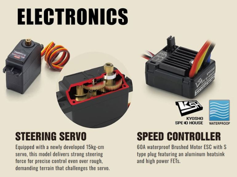 – Viene fornito di serie con un servo ad alta coppia da 15 kg di nuova concezione per un controllo preciso dello sterzo.
