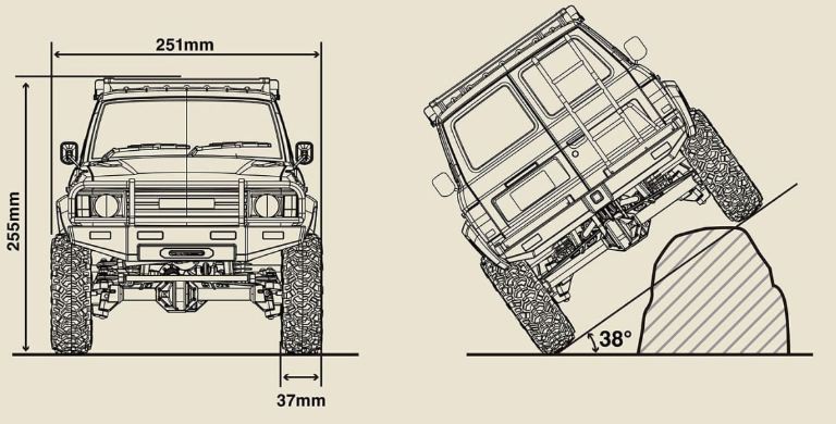– Abbina il telaio KC10 di nuova concezione a una carrozzeria di alta qualità per un’esperienza impressionante di crawling elettrico in scala 1/10.