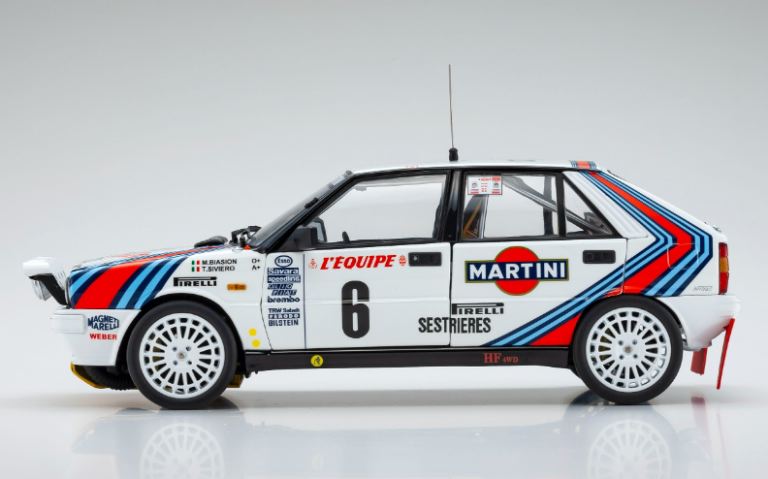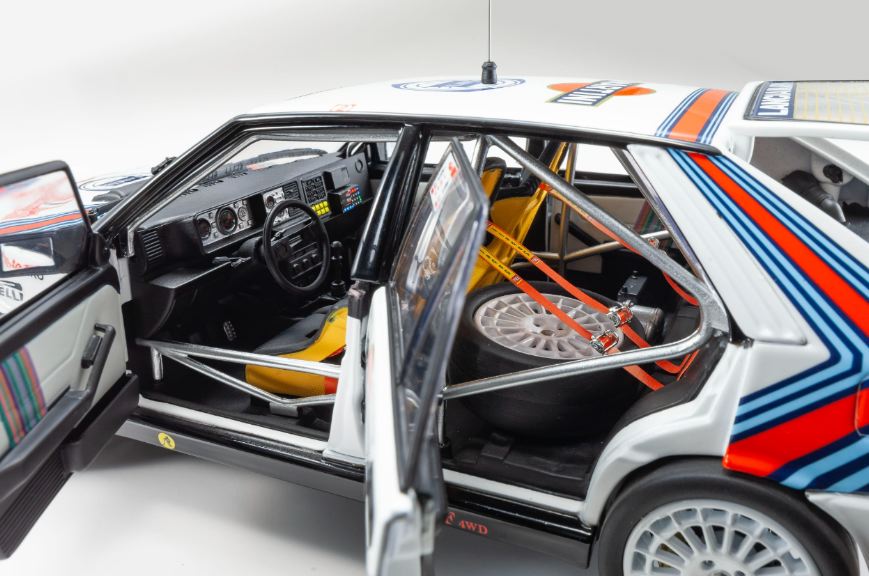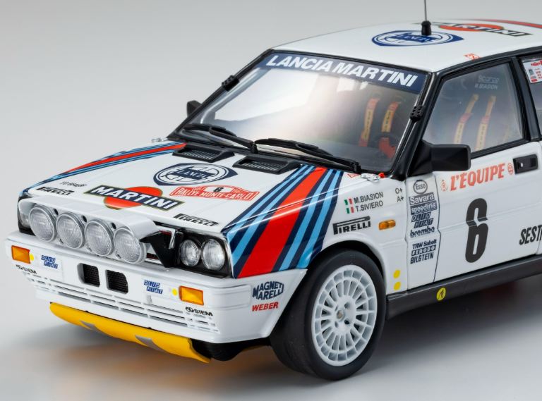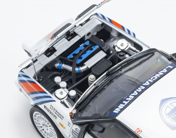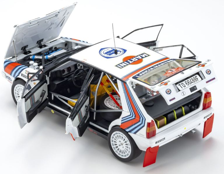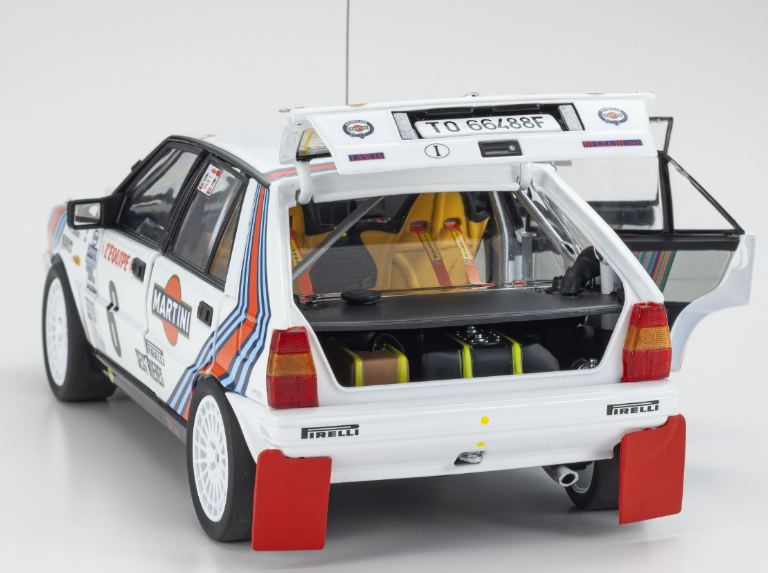 Per replicare la carrozzeria stretta della Lancia Delta HF 4WD che ha corso nel 1987-1988, le caratteristiche dettagliate sono state realizzate con un nuovo stampo per la carrozzeria, ad esempio parafanghi, cofano, prese d’aria sul tetto.