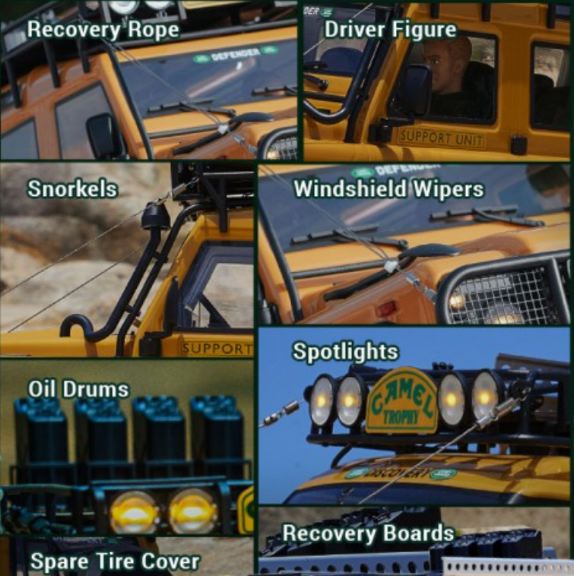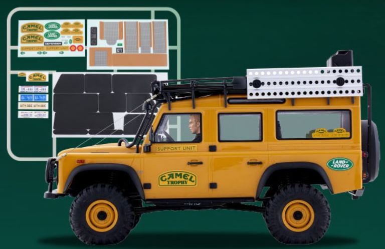 La robusta scocca del PC è rifinita con l’iconica livrea Camel Trophy Land Rover, completa di dettagli in scala autentici come specchietti laterali, snorkel, finestrini trasparenti e interni completamente dettagliati con cruscotto e figura del guidatore. Per aumentare ulteriormente il realismo, ogni modello include portapacchi, faretti funzionanti, fusti di petrolio, pale, asce, picconi e una scaletta posteriore, catturando l’aspetto e lo spirito degli originali veicoli da spedizione del Camel Trophy.