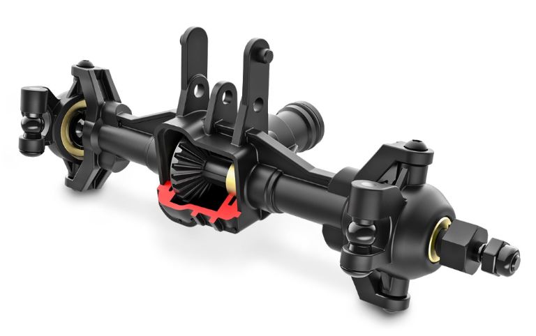Gli assali anteriore e posteriore del TRX-4M sono dotati di palo rigido per fornire potenza di salita continua a tutte e quattro le ruote. I robusti giunti a velocità costante (CV) in acciaio consentono un maggiore angolo di sterzata delle ruote anteriori per curve strette.