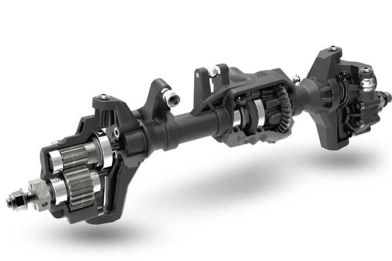 Gli assali disassati alle ruote riducono gli effetti di torsione causati dalla coppia motrice. La riduzione agli assi-ruota è più del doppio rispetto alle trasmissioni convenzionali. La coppia del motore Titan 550 viene trasformata in movimento diretto e potente, senza perdite di potenza e di aderenza.