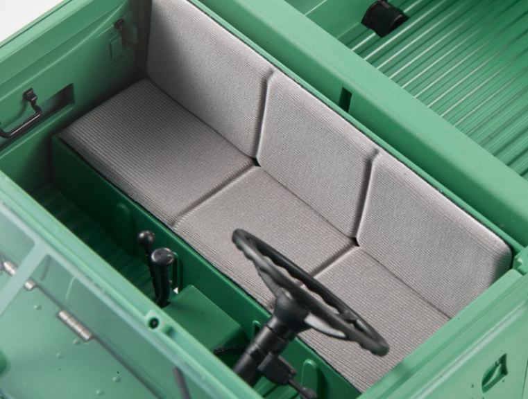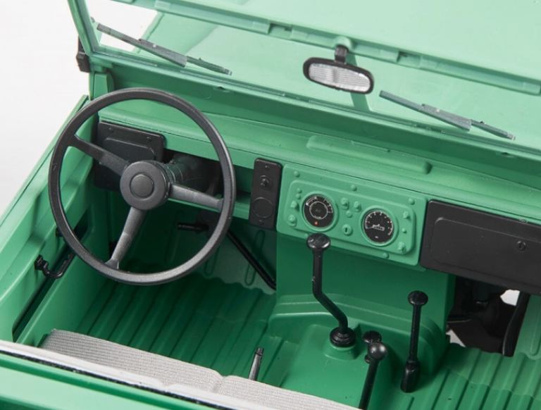 La Land Rover Series II è estremamente accurata in termini di aspetto, dimensioni e dettagli, con un livello di realismo paragonabile a modelli statici. La carrozzeria dell’auto è progettata con rivetti in scala, griglia incisa, cerniere delle porte, un tappo del serbatoio, supporto del cofano e altre caratteristiche, per aumentare il realismo. I sedili anteriori possono ospitare tre passeggeri, compatibili con action figures in scala 1/12. Il parabrezza anteriore può essere inclinato verso il basso e il cofano e la porta posteriore possono aprirsi per aumentare l’autenticità del modello.