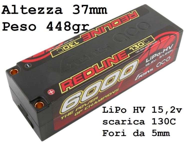 Pacco LiPo 4s 15,2v HV da 6000mAh e scarica di 130C ben 780A.