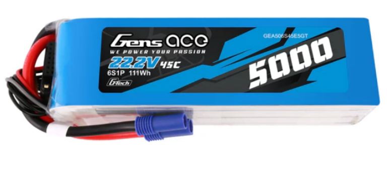 La batteria Gens Ace 5000mAh 6S 45C 22,2 V Lipo è in grado di fornire la potenza per supportare qualsiasi applicazione.