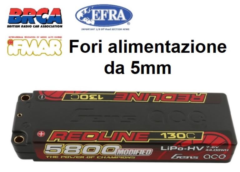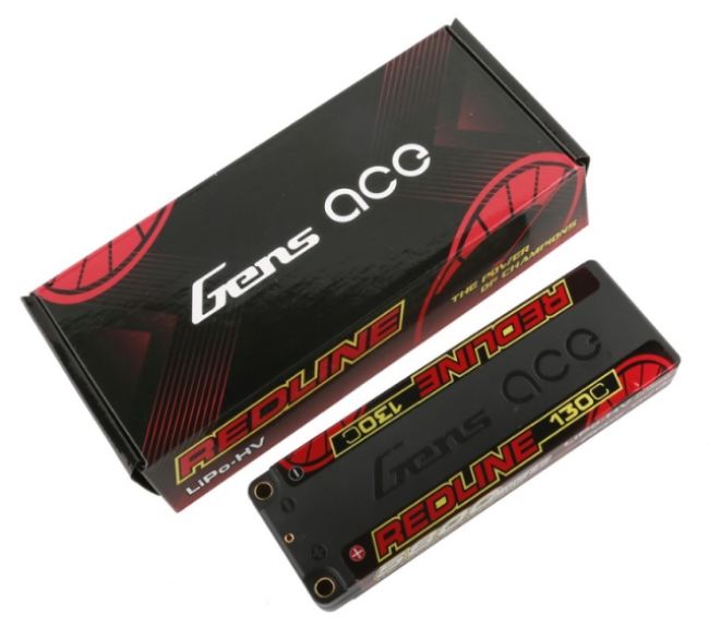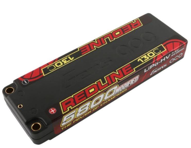 Pacco LiPo HV Gens Ace Redline Series 2S 130C 5800mAh Hardcase Ultra LCG per un centro di gravità ultra basso.