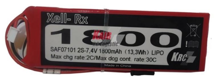 Tipo Li-Po Voltaggio Nominale 7,4 (2S) Volt Capacità 1800 mAh Scarica Continua 30 C Carica 2 C Tipo Balancer JST-XH/Great Planes Dimensioni 12,6x35x101 Peso 101 Grammi