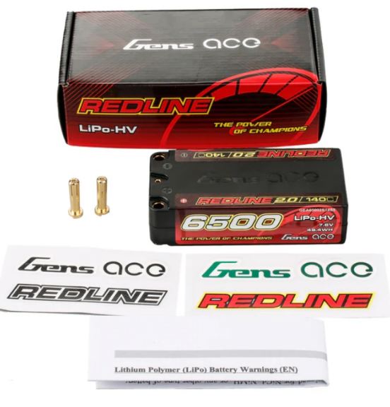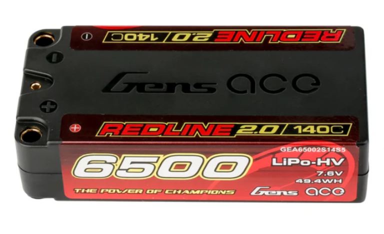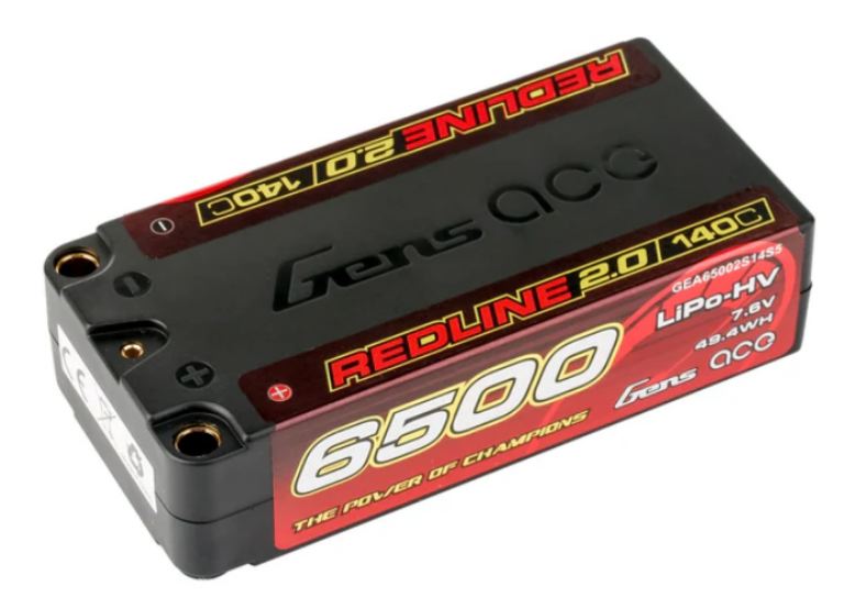 Gens ace Redline 2.0 Serie 140C 6500mAh 2s Pacco Batteria LiPo Rigido, con un connettore a proiettile da 5.0mm installato in fabbrica. I consumatori si fidano del marchio Gens ace per offrire l’affidabilità e le alte prestazioni che si aspettano. Il pacco batteria LiPo Gens ace Redline 2.0 ha un’alta capacità, un’alta velocità di scarica che ti offre la potenza e l’autonomia che ti aspetti.