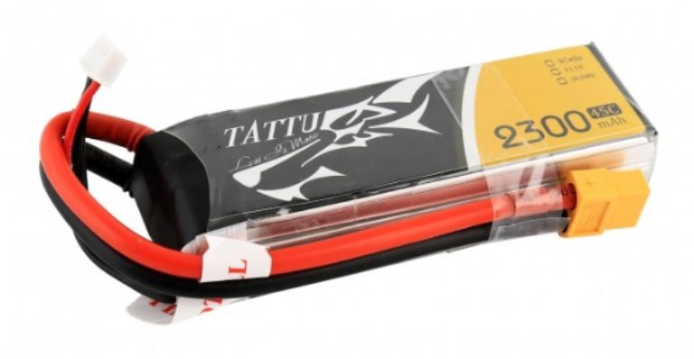 TATTU 2300mAh 11.1V 45C 3S1P è un pacco batteria Lipo ben bilanciato. L’utilizzo di materiali di prima qualità nelle celle della batteria assicura una lunga vita del pacco