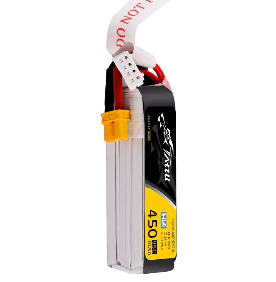 Notevole tecnologia di impilamento consente capacità di singola cella di 450 mAh. Alte prestazioni di scarica e alta densità di energia. Materiali grezzi ai polimeri di litio superiori provenienti da Giappone e Corea. Le batterie Tattu offrono alta qualità alimentazione affidabile per il tuo Multirotore FPV di dimensioni 90-150.