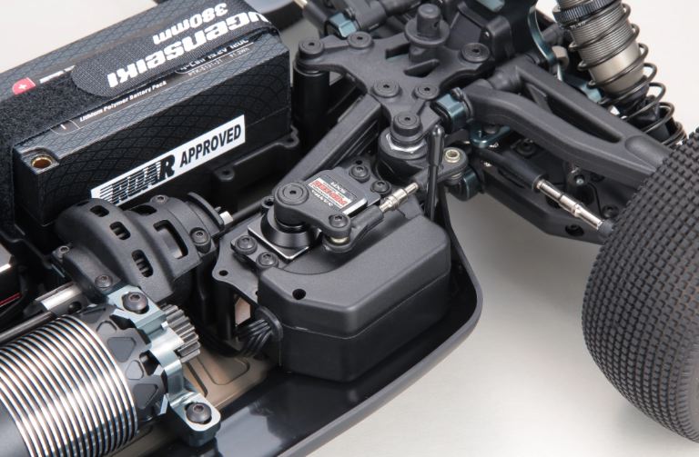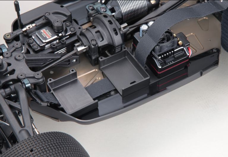 Nuovi supporti e geometria delle sospensioni. L’MBX8R Eco utilizza nuovi blocchi pivot RF (C) e RR (D) stretti con nuovi inserti pivot per una maggiore sintonizzabilità. Nuovi bracci di sospensione a forma di scatola più lunghi e rinforzi del braccio. Il braccio posteriore utilizza un materiale resistente agli urti per una maggiore durata. La regolazione della durezza dei bracci delle sospensioni inferiori è possibile con piastre CFRP opzionali. Novità anche per l’MBX8R Eco sono i montanti posteriori. I montanti stampati hanno piastre in CFRP per regolare il centro del rullo posteriore.