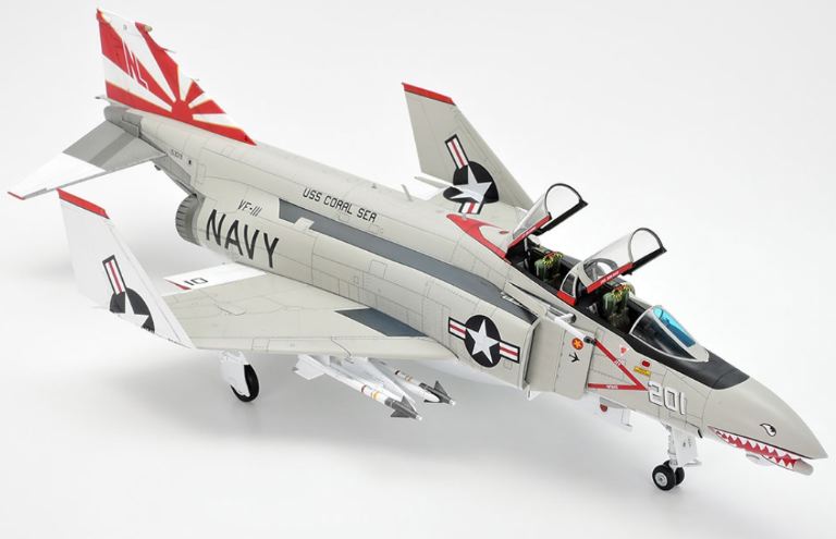 Il dispiegamento dell’F-4 Phantom II è iniziato nei primi anni ’60 e ne sono stati prodotti oltre 5.000 durante la sua corsa di produzione. L’F-4 Phantom II è stato utilizzato non solo dalla Marina e dall’Aeronautica in America, ma anche in altri paesi per la sua lunga autonomia e la sua superlativa capacità di carico. Nel 1952, la Marina desiderava un velivolo supersonico e mentre veniva impiegato l’F-8 Crusader prodotto dalla Vought Aircraft Industries, Inc., la McDonnell Aircraft Corporation continuò a sviluppare un intercettore biposto con potenti motori doppi. Questo velivolo equipaggiò quattro AIM-7E Sparrow e AIM-9G/H Sidewinder, e fu ufficialmente adottato come F4H-1 nel dicembre 1958 (che in seguito fu ribattezzato F-4A). La produzione dell’F-4B iniziò nel 1961 e la sua consegna iniziò con il Fighter Squadron VF-74. Nel 1965, due F-4B abbatterono ciascuno due MiG-17 nordvietnamiti, ma la maggior parte delle uccisioni di nemici nelle prime fasi della guerra del Vietnam furono effettuate dall’F-8. Tuttavia, dall’operazione Linebacker nel 1972 in poi, lo spiegamento dell’F-4 è aumentato ed è stato utilizzato per attacchi aria-terra. Successivamente, sono stati sviluppati vari tipi di velivoli F-4 e alcuni sono persino stati in servizio con alcuni paesi per mezzo secolo.