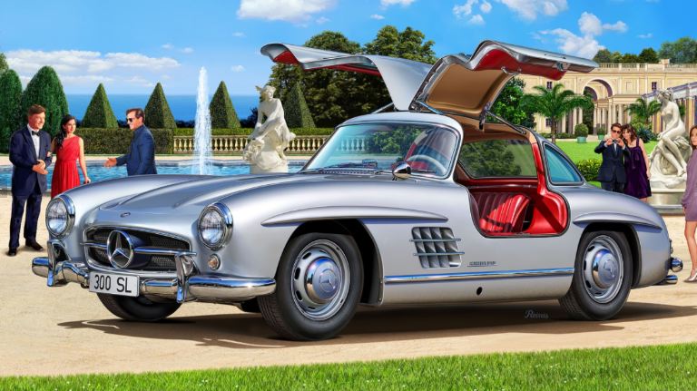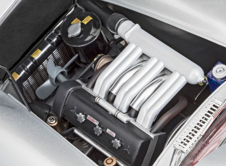 Modellino molto impegnativo per la leggendaria Mercedes-Benz 300 SL (cilindrata di 3,0 litri, super leggera ). Il bel veicolo con il suo lungo cofano e le tipiche porte ad ali di gabbiano ha deliziato anche il pubblico americano, tanto che un buon 75 percento dei 1.400 modelli prodotti sono stati spediti all’estero. L’auto sportiva più veloce del suo tempo ha raggiunto quasi 260 km / h.