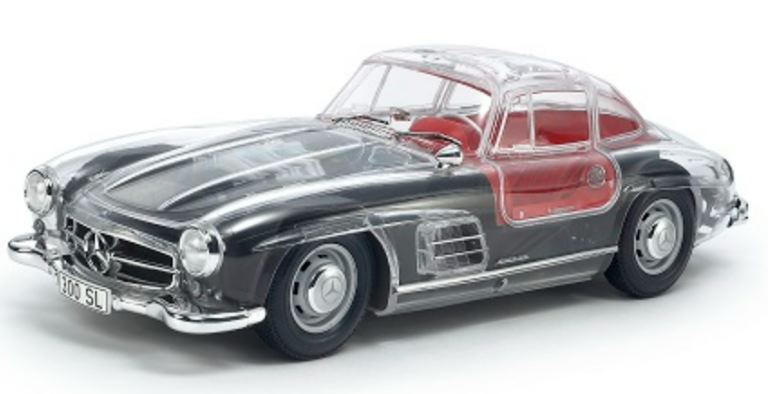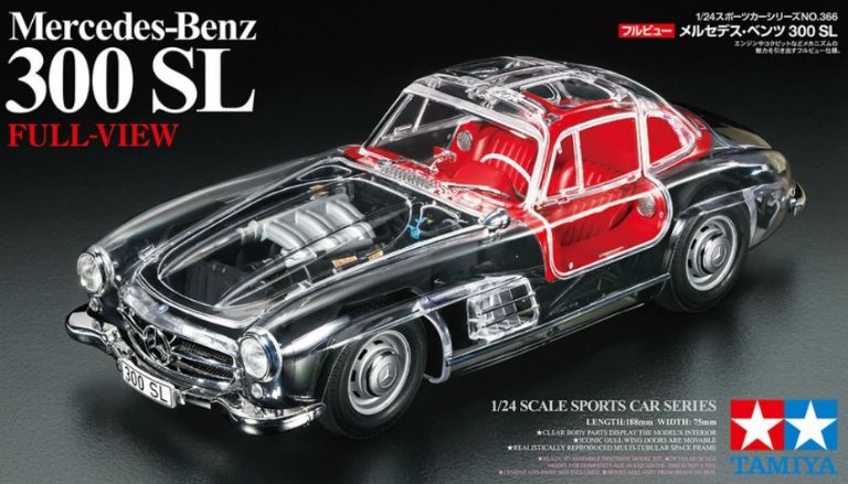 Basato sull’articolo 24338, Tamiya dà il benvenuto alla Mercedes-Benz 300 SL come kit “Full-View” in scala 1/24 con una nuova confezione.