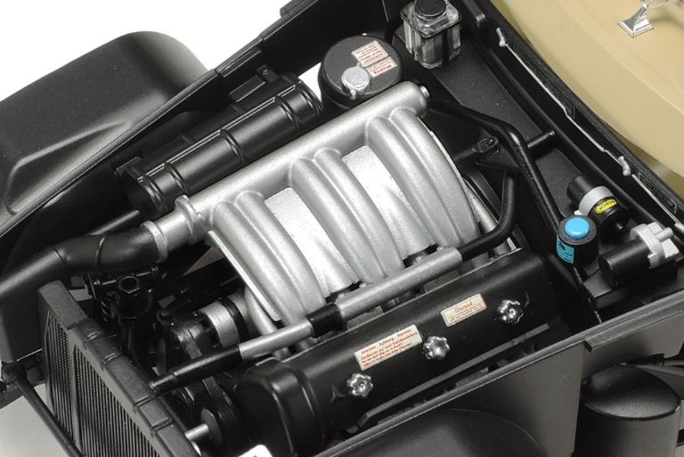 • Il motore 6 cilindri in linea da 3 litri è raffigurato con un angolo di 45 gradi, proprio per consentirgli di adattarsi sotto il cofano a basso profilo dell’auto reale.