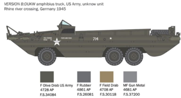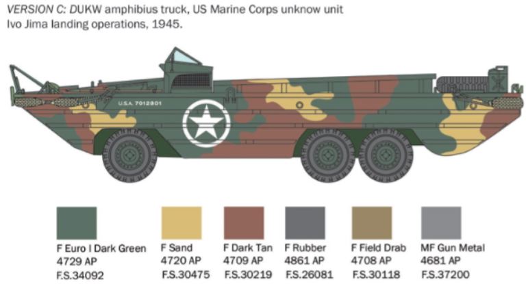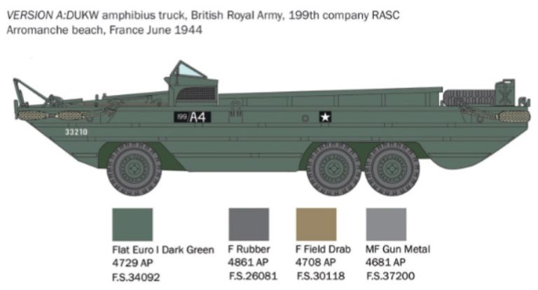 Dallautocarro da trasporto tattico americano General Motor CCKW-353 2½ t 6×6 venne progettata e realizzata una versione speciale anfibia per soddisfare le necessità logistiche dei reparti da sbarco dellesercito americano in modo da trasferire carichi direttamente e velocemente dalle navi alla spiaggia. La componentistica di base era infatti la medesima del camion stradale GMC con il suo motore 6 cilindri da 4.400 cm3 e i tre differenziali con le sei ruote motrici. Il DUKW si caratterizzava dallo scafo saldato, per renderlo anfibio, rinforzato da costolature orizzontali. Il suo punto di forza era la straordinaria versatilità e capacità di carico. Poteva infatti trasportare 2.400 Kg. di carico utile o 25 uomini completamente equipaggiati. I DUKW vennero largamente utilizzati su tutti i teatri di guerra dallesercito degli Stati Uniti, dai Marines e dalle forze armate di numerosi Paesi Alleati. Hanno dato il loro efficace contributo negli sbarchi di Salerno, Anzio, in Normandia durante il D-Day, sia a Utah che a Omaha, e sulle spiagge del Pacifico.