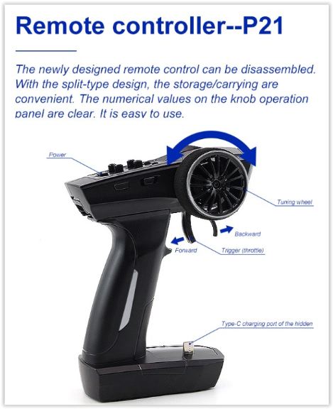 Il Turbo Racing P31 è un telecomando staccabile per un facile stoccaggio e trasporto. Viene fornito con una copertura protettiva adatta a diverse forme della mano e consente un funzionamento confortevole.